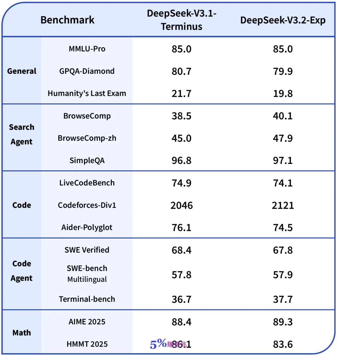 DeepSeek-V3.2-Exp 發布,訓練推理提效,API 同步降價今天,我們正式發布DeepSeek-V3.2-Exp 模型,這是一個實驗性(Experimental)的版本。作為邁向新一代架構的中間步驟,V3.2-Exp 在V3.1-Terminus 的基礎上引入了DeepSeek Sparse Attention(一種稀疏注意力機制),針對長文本的訓練和推理效率進行了探索性的優化和驗證。 目前,官方App、網頁端、小程式均已同步更新為DeepSeek-V3.2-Exp,同時API 大幅降價,歡迎廣大使用者體驗測試並向我們回饋意見。 DeepSeek Sparse Attention(DSA)稀疏注意力DeepSeek Sparse Attention(DSA)首次實現了細粒度稀疏注意力機制,在幾乎不影響模型輸出效果的前提下,實現了長文本訓練和推理效率的大幅提升。 ![]() 為了嚴謹地評估引入稀疏注意力帶來的影響,我們特意把DeepSeek-V3.2-Exp 的訓練設定與V3.1-Terminus 進行了嚴格的對齊。在各領域的公開評測集上,DeepSeek-V3.2-Exp 的表現與V3.1-Terminus 基本持平。 論文連結& 模型DeepSeek-V3.2-Exp 模型現已在Huggingface 與魔搭開源: