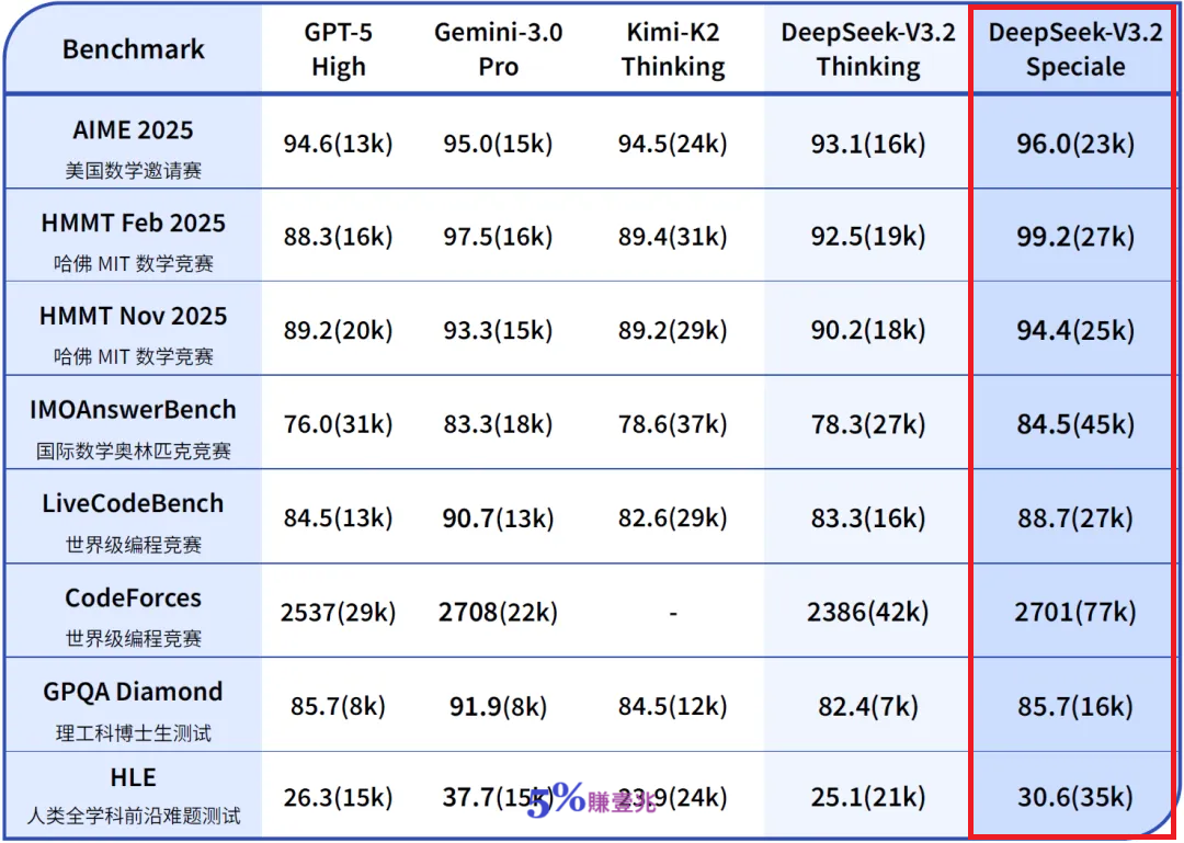 DeepSeek V3.2 正式版:強化Agent 能力,融入思考推理兩個月前,我們發布了實驗性的DeepSeek-V3.2-Exp,並收到了許多熱心用戶回饋的對比測試結果。目前未發現V3.2-Exp 在任何特定場景中顯著差於V3.1-Terminus,驗證了DSA 稀疏注意力機制的有效性。也感謝廣大用戶一直以來的正面回饋與支持,為我們的持續創新註入了更多信心與動力。 今天,我們同時發布兩個正式版模型:DeepSeek-V3.2 和DeepSeek-V3.2-Speciale。官方網頁端、App 和API 均已更新為正式版DeepSeek-V3.2,歡迎使用。 Speciale 版本目前僅以臨時API 服務形式開放,以供社區評測與研究。 新模型技術報告已同步發布:https://modelscope.cn/models/deepseek-ai/DeepSeek-V3.2/resolve/master/assets/paper.pdf ![]() 推理能力全球領先